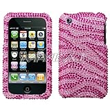 Rhinestones Shield Protector Case for Apple iPhone 3G & 3GS, Pink Zebra Stripes Full Diamond