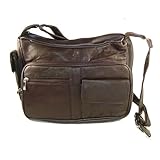 Genuine Leather Handbag with Cell Phone Holder & Many Pockets (Dark Brown)