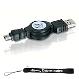 - 3.2 ft Mini Retractable USB 2.0 A/B Cable w/Power Sync Black + Includes a Determination Hand Strap