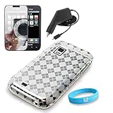 White Checkered No Slip Silicone Case for Samsung Galaxy Fascinate SCH- i500 + Mirror Screen Protector + Rapid Car Charger with IC Chip Micro USB + Blue Wisdom * Courage Wristband